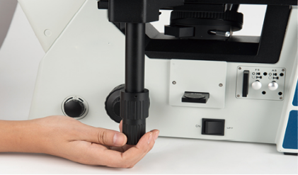 反射明暗场金相机架,采用低手位粗微调同轴,粗调行程9mm, 焦面向上6.5mm,向下2.5mm, 微调精度0.002mm,带有防止下滑的松紧调节手轮 |