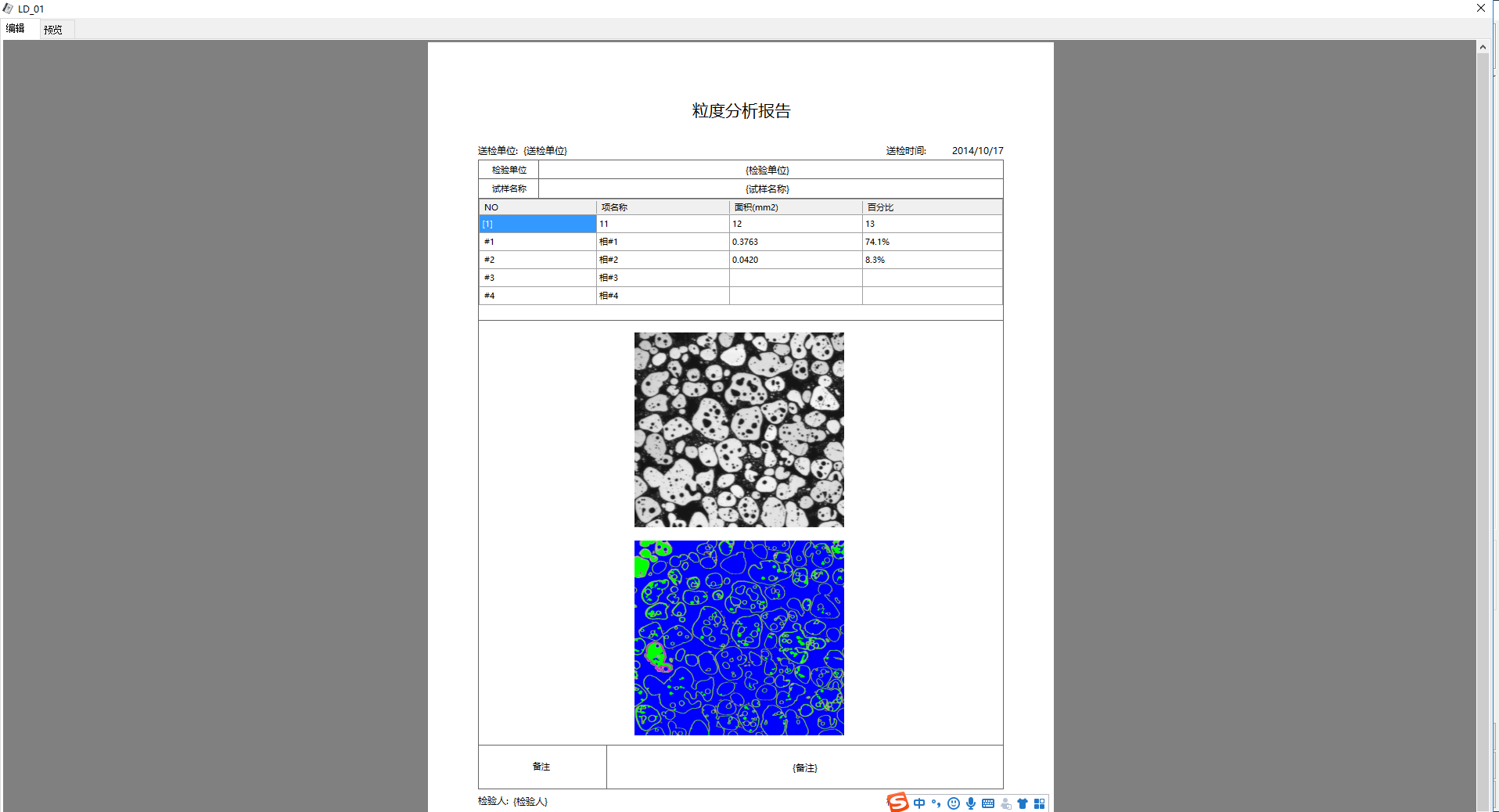 出每个颗粒的直径、周长、面积,以及所有颗粒的颗粒总数、相面积百分含量、最大颗粒直径、最小颗粒直径、平均颗粒直径等数据。