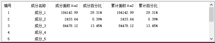 算出金刚石的面积百分比,同时算出孔隙总数、最大孔隙半径、最小孔隙半径、平均孔隙半径等值。