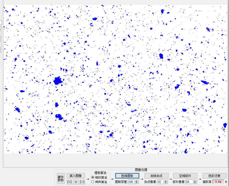 颜色提取完成后,开始---点击--提取色域按钮-----去除杂点---空域修补—色彩还原----。(操作完成后的图像)