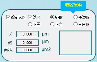 1、 图像拍摄完成后,分析区域的选择提供了矩形、多边形、正圆、正方、三角形等选区工具,选完区后软件自动对选区区域进行一次孔隙分析。