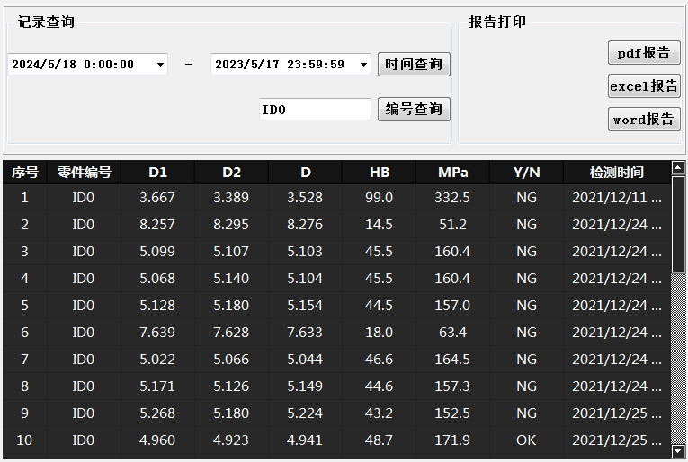 拥有数据库系统,数据支持时间查询和编号查询,并可按照需求生成pdf,Excel和word格式的报告,并可扩展接入客户math系统。