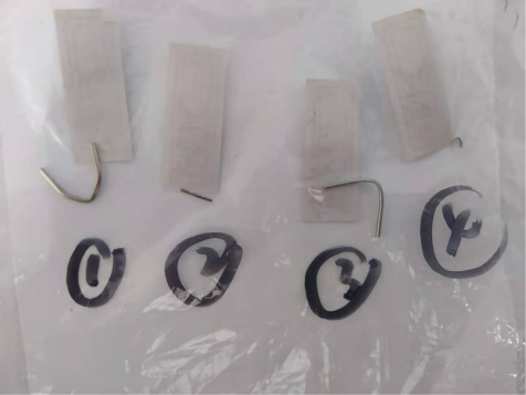 客户所提供的试样共4种止血钉,编号1-4形状不规则,如下图所示: