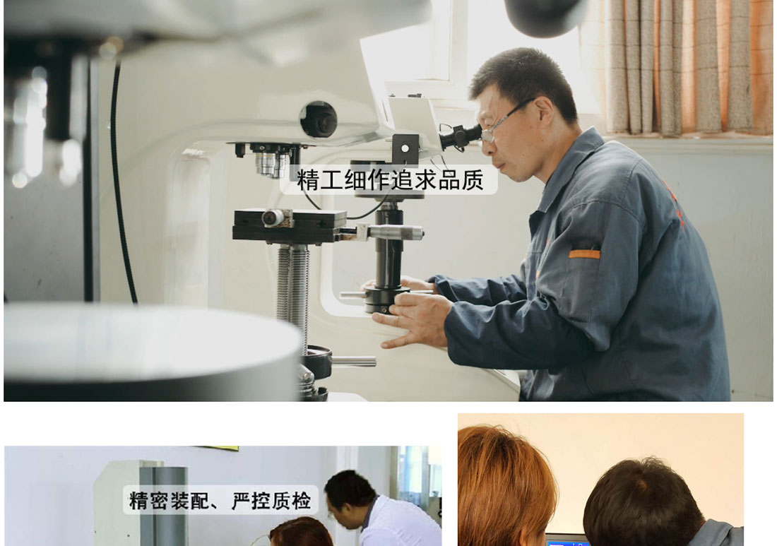 现有洛氏、布氏、维氏、布洛维、金相设备5个装配车间,装配人员达到50人,配套国内最先进的检测设备,质量检测与精度检测两道质检程序严格把关;